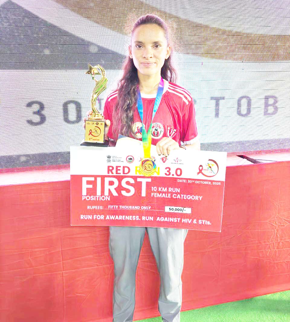 देहरादून । 30 अक्टूबर का दिन उत्तराखण्ड के लिए गर्व का क्षण बन गया, जब चमोली जनपद के छोटे से गांव लुन्तरा (पो. नंदानगर) की बेटी कुमारी अनीशा ने राष्ट्रीय स्तर पर आयोजित रेड रन मैराथन 3.0 में देशभर के प्रतिभाशाली धावकों को पछाड़ते हुए महिला वर्ग में प्रथम स्थान हासिल किया। अनीशा ने 10 किलोमीटर की 3.0 प्रतियोगिता की दौड़ में प्रथम स्थान प्राप्त किया। यह प्रतियोगिता स्वास्थ्य एवं परिवार कल्याण मंत्रालय, भारत सरकार के राष्ट्रीय एड्स नियंत्रण संगठन (नाको) द्वारा नागालैण्ड के दीमापुर जनपद में आयोजित की गई थी। सचिव, चिकित्सा स्वास्थ्य एवं चिकित्सा शिक्षा/परियोजना निदेशक डॉ. आर. राजेश कुमार ने कुमारी अनीशा को राष्ट्रीय स्तर पर प्रथम स्थान प्राप्त करने पर हार्दिक बधाई देते हुए कहा कि उनकी यह सफलता पूरे उत्तराखण्ड के लिए गर्व का विषय है। उन्होंने अनीशा के उज्ज्वल भविष्य की कामना की।