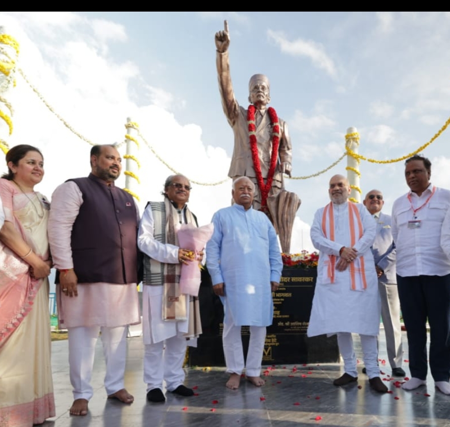 केंद्रीय गृह मंत्री अमित शाह की मौजूदगी में आरएसएस सरसंघचालक डॉ. मोहन भागवत ने किया सावरकर प्रतिमा का अनावरण