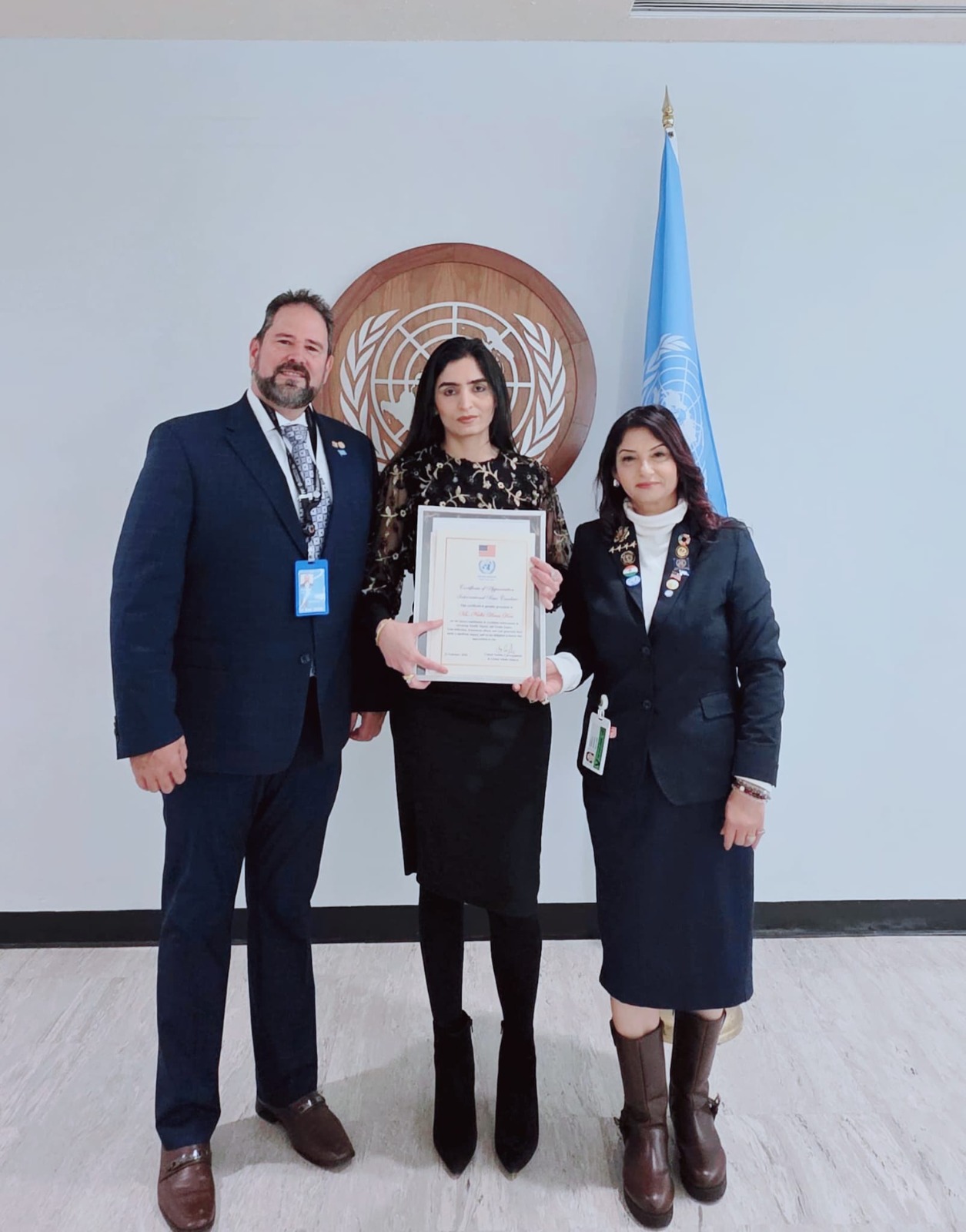 यह सम्मान यूनाइटेड नेशंस के प्रतिनिधि एम्बेसडर लुइस सुआरेज़ हर्नांडेज़ और यूनाइटेड नेशंस ग्लोबल पीस काउंसिल की चेयरपर्सन डॉ. बरखा वर्शा की उपस्थिति में प्रदान किया गया। सर्टिफिकेट ऑफ़ एप्रिसिएशन में उनके उन निरंतर प्रयासों को सराहा गया जो यूनाइटेड नेशंस सस्टेनेबल डेवलपमेंट गोल्स — विशेष रूप से